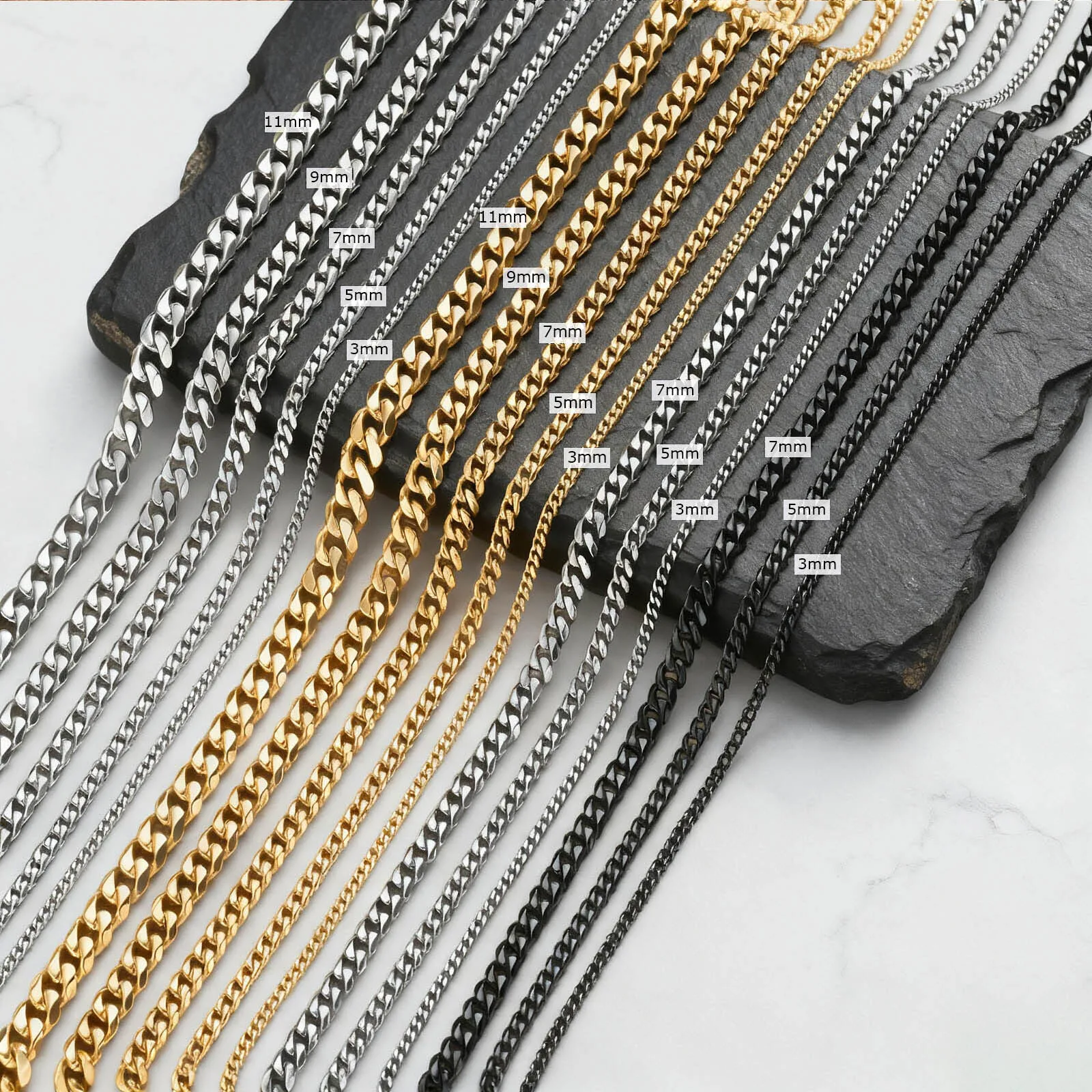 Класическо пънк кубинско колие с верижка за мъже и жени, неръждаема стомана, сиво, сребърно, златисто, черно, цвят, верига на едро